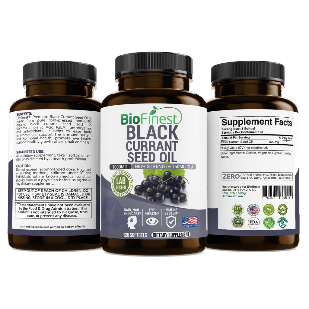 Black currant (sometimes called blackcurrant) is shrub native to europe and parts of northern asia that grows in damp, fertile soil and produces small black berries. The juice, leaves, and flowers of black currant are safe when eaten in food products. Black currant seed oil hair products are rich in antioxidants, which is why they are highly recommended for people suffering from excessive hair loss, dry and brittle hair, lusterless hair, and other hair problems. I have been taking black currant oil 3x's a day for the past 3 months. The year was 1996 and the man was david horrobin, founder of efamol, which researched and sold evening primrose oil throughout the 80's.